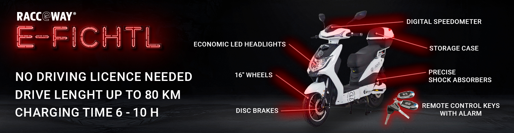 Electric scooter RACCEWAY® E-FICHTL®, red-glossy, without battery